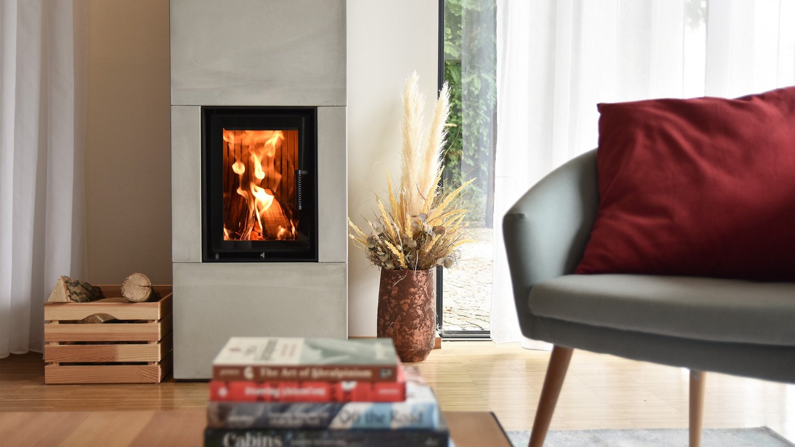 Der Hoxter Blox 60 bietet mehr Speichermasse und eine größere Sichtscheibe. Dadurch entsteht ein intensiveres Flammenbild bei gleichzeitig langer Wärmeabgabe. Perfekt für offene Wohnbereiche und moderne Raumkonzepte.