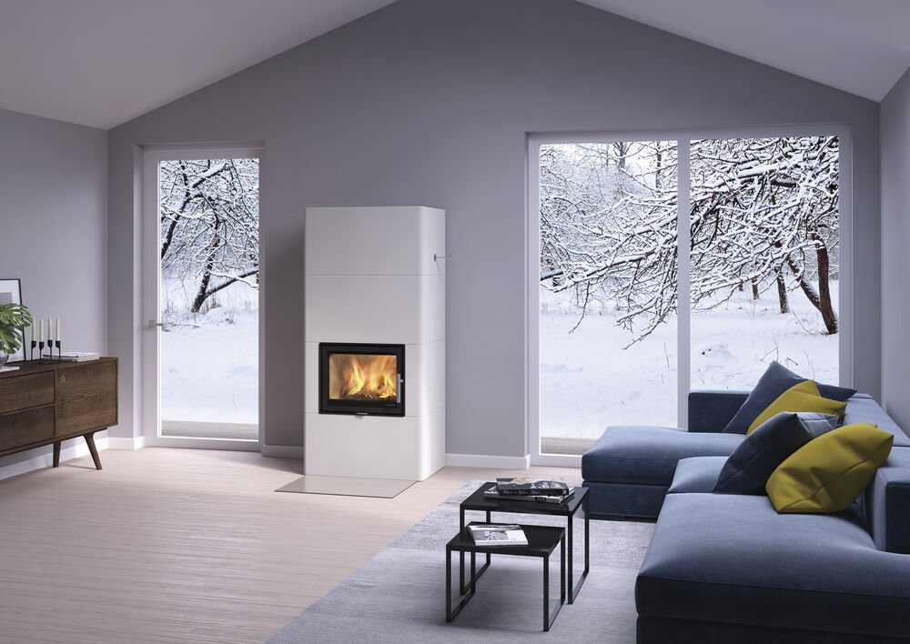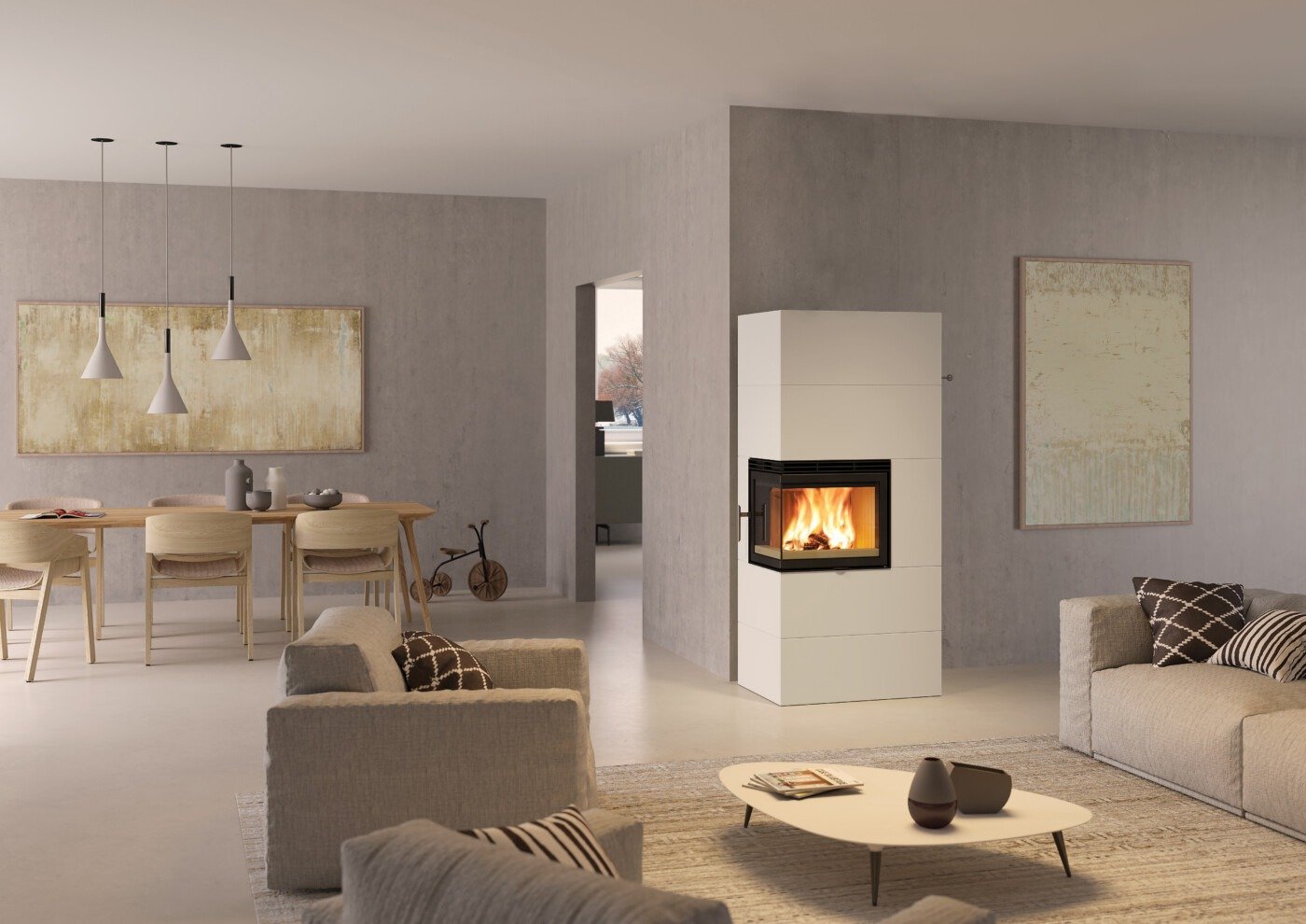 Nordpeis Speicheröfen verbinden skandinavisches Design mit moderner Speichertechnik. Klare Formen, massive Speichermaterialien und große Sichtscheiben schaffen eine hochwertige Feuerstelle für zeitgemäße Wohnräume.