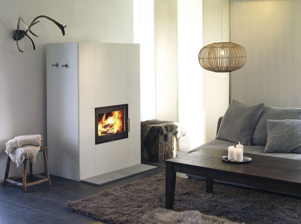 Die Speicheröfen von Nordpeis nehmen die Wärme des Feuers auf und geben sie über viele Stunden als angenehme Strahlungswärme an den Raum ab. Durch die massive Bauweise entsteht ein gleichmäßiges Raumklima bei gleichzeitig effizienter Verbrennung.